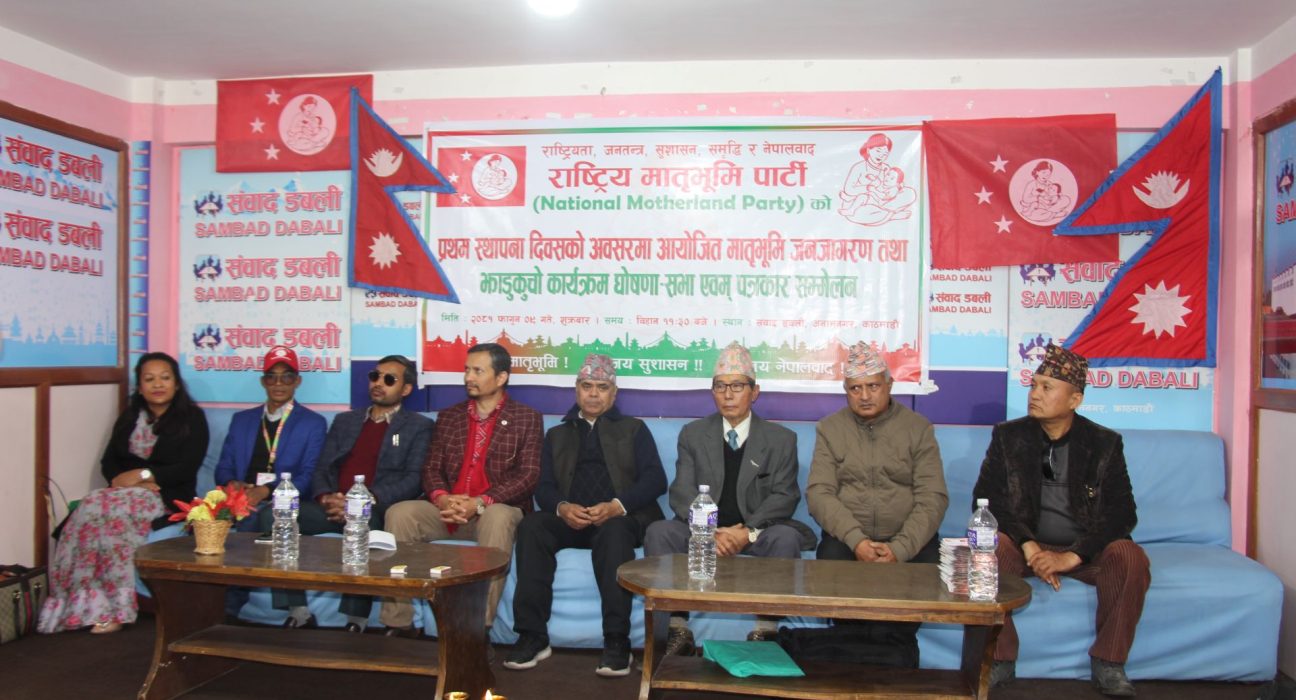 काठमाडौं । राष्ट्रिय मातृभूमि पार्टीले प्रथम स्थापना दिवसको अवसर पारेर कुशासन, भ्रष्टाचार र बेथिति विरुद्ध संघर्षका कार्यक्रम घोषणा गरेको छ ।