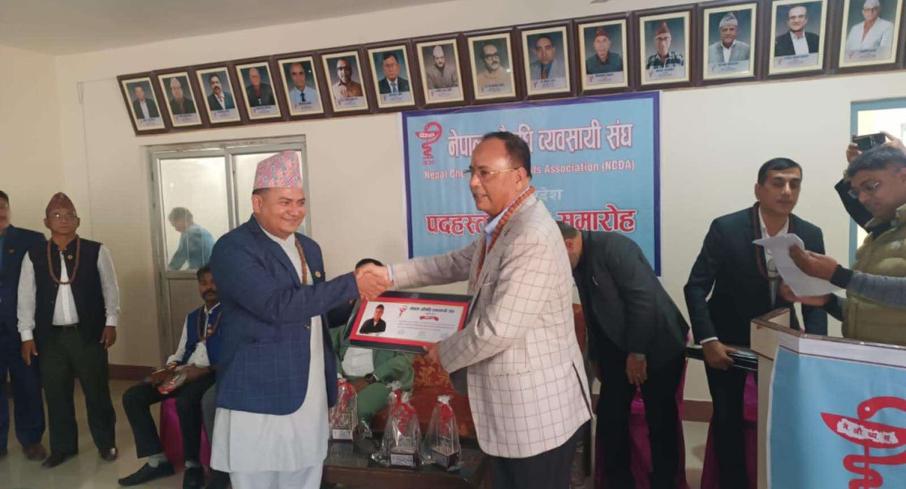 नेपाल औषधी व्यवसायी संघका केन्द्रीय अध्यक्ष प्रकाश कुमार खन्डेवालको प्रमुख अतिथिमा पदस्थापन भएको थियो । नवनिर्वाचित कार्यसमितिहरुलाई पद तथा सपथ प्रमुख निर्वाचन अधिकृत गणेशराज लुईटेलले गराएका थिए ।