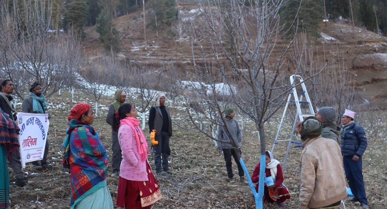 यतिबेला यहाँका कृषक स्याउको बिरुवाको काँटछाँट, गोडमेल, मलजल गर्ने चटारोमा छन् ।