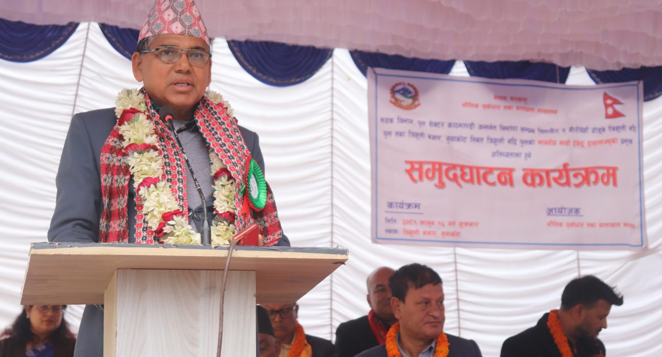 विदुर नगरपालिका–४ र विदुर–१२ जोड्न सिमचउरामा निर्मित एक सय मिटर लम्बाइको पक्की पुल र विदुर–१ स्थित त्रिशूली बजारमा निर्मित ६० मिटर लम्बाइको पक्की पुलको उद्घाटन गर्दै उनले सरकारलेजनता केन्द्रित पूर्वाधार विकासलाई प्राथमिकतामा राखेको उल्लेख गरेका हुन् ।