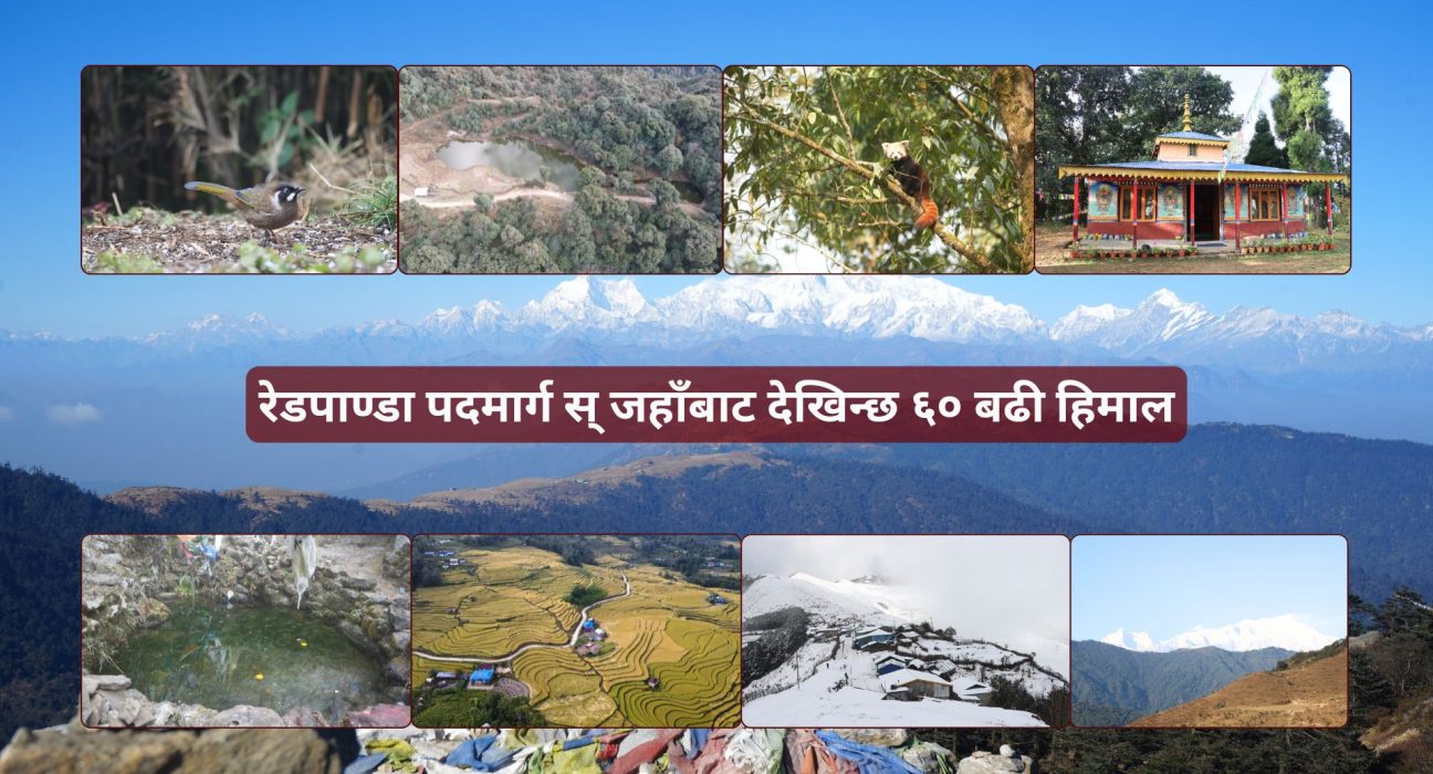 सन्दकपुरबाट गुराँसे भञ्ज्याङ्ग, बिखेभञ्ज्याङ, चौरीचौक, कालपोखरी, कैयाकट्टा हाँगेथाम हुँदै ढापपोखरी पुगेर पुरा हुन्छ । रेडपाण्डा पदमार्ग यात्राका क्रममा विश्वको अग्लो हिमश्रङ्खला ६० बढी हिमालको दृश्य, लोपउन्मुख वन्यजन्तु रेडपाण्डा, चरिबाघ, मुनाल, डाँफे सहित सयौँ प्रजातीका चराहरु, सिमसार, नदीका मुहान, प्राकृतिक सुन्दरतामा रमाउन सकिने स्थानीयहरुको दाबी छ ।