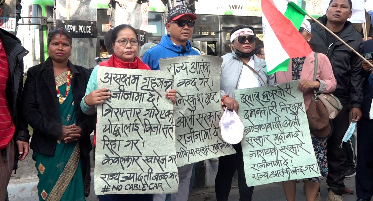 काठमाडौं । ताप्लेजुङ जिल्लाको पाथीभरामा केवलकार निमार्णको विरुद्धमा आन्दोलन गरिरहेका ‘नो केबलकार’ पक्षले आज (बुधवार) काठमाडौंको माइतीघर मण्डलामा प्रदर्शन गरेका छन् ।