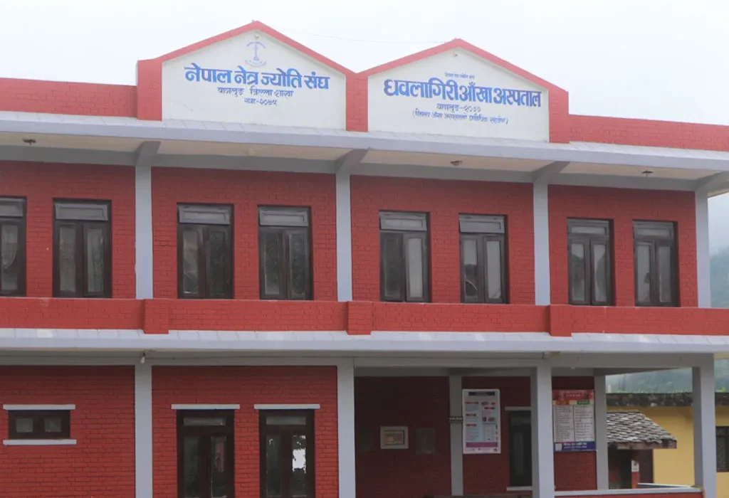 उक्त अस्पतालले शल्यक्रिया लगायतका सेवा प्रदान गर्दै आएको सङ्घका जिल्ला अध्यक्ष राज भण्डारीले जानकारी दिए । उनका अनुसार सङ्घले निःशुल्क आँखा उपचार शिविर पनि सञ्चालन गर्दै आएको छ । दक्ष चिकित्सक मार्फत अस्पतालबाट सेवा प्रदान भइरहेको र थप जनशक्तिको खाँचो रहेको अध्यक्ष राज भण्डारीले बताए । अस्पतालले भवनलगायत पूर्वाधार व्यवस्थापनका कामलाई पनि अगाडि बढाएको छ । अस्पतालले पोखराको हिमालय आँखा अस्पताल सँगको सहकार्यमा नियमित शल्यक्रिया लगायत सेवा प्रदान गर्दै आएको छ । विसं २०४९ देखि सङ्घले धौलागिरि क्षेत्रमा आँखा सम्बन्धी स्वास्थ्य सचेतना र उपचारमा अगुवाइ गर्दै आएको छ ।