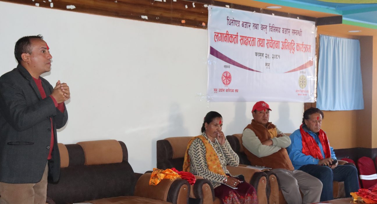 मुगु । मुगुको सदरमुकाम गमगढी बजारमा पहिलो पटक पूँजी बजार सम्बन्धी जनचेतना तथा वित्तीय साक्षरता कार्यक्रम सञ्चालन गरिएको छ ।