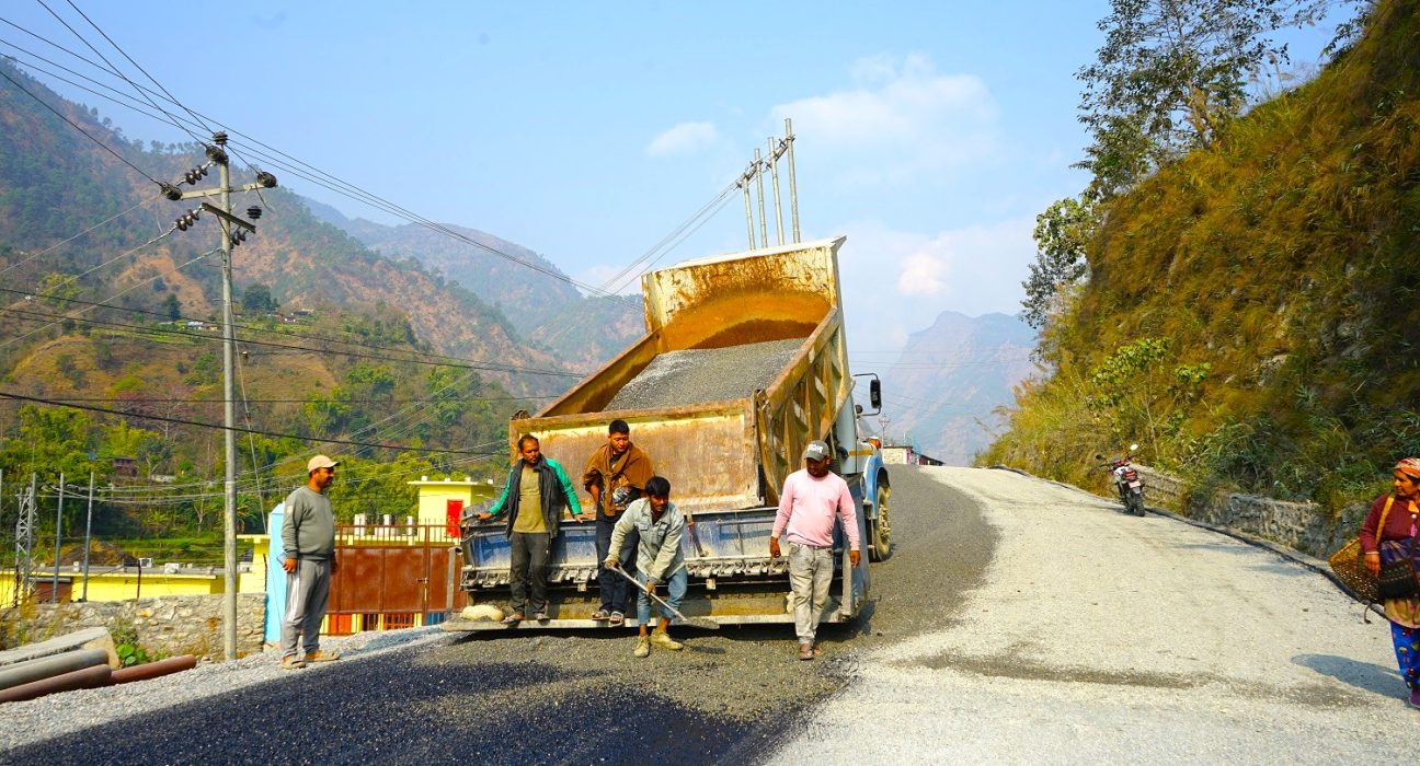 “फराकिलो पार्ने, पानीको निकास, टेवा पर्खाल बनाउने, बेस र सबबेस राख्ने काम सकिएको ठाउँमा माघ १९ गतेदेखि सुरु गरिएको कालोपत्र गर्ने काम फागुन २७ गते सकिएको छ”, पौडेलले भने, “बाङ्गेपहिरो छाडेर बाँकी ढाडखर्क, दरबाङ बजारमा भइरहेको पूर्वाधार निर्माणको काम सकिएपछि कालोपत्र गर्ने तयारी छ ।”