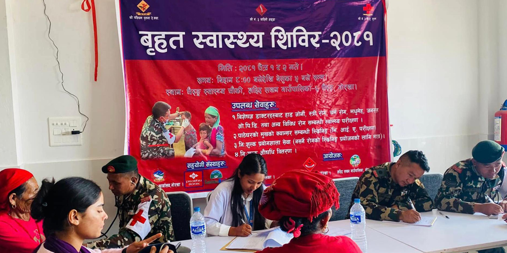 गोरखा, ३ चैत गोरखाको सहिद लखन गाउँपालिका–६, स्थित घैरुङ स्वास्थ्य चौकीमा सञ्चालन भएको दुई दिने बृहत् स्वास्थ्य शिविरमा पाँच सय २५ जनाले निःशुल्क स्वास्थ्य उपचार सेवा लिएका छन् ।
