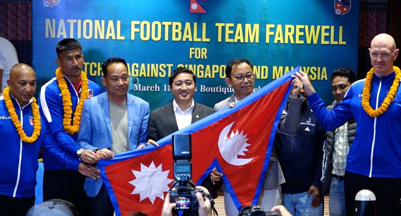 मंगलबार काठमाडौंको कोटेश्वरस्थित डिस बुटिक होटलमा आयोजित कार्यक्रमका बीच उनीहरुलाई राष्ट्रिय खेलकुद परिषद (राखेप) सदस्य सचिव टंकलाल घिसिङ, एन्फा अध्यक्ष पंकज विक्रम नेम्वाङ लगायतले बिदाई गरिएको हो ।