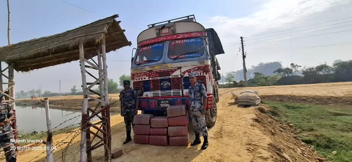 सशस्त्र प्रहरीले चैत्र ६ गते राती रामनगरबाट १ सय ३ के.जी. गाँजासहित ना. ८ ख ९०२७ नम्बरको ट्रक नियन्त्रणमा लिएको हो ।