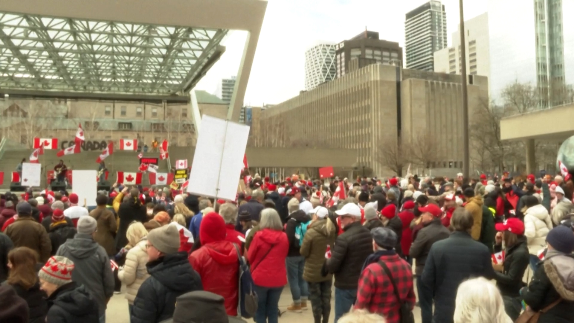 ट्रम्पकै विवादस्पथ अभिव्यक्तिलाई लिएर शनिबार टोरन्टोको नाथन फिलिप्स स्क्वायरमा क्यानाडाका पक्षमा जुलुश निकालेका थिए ।