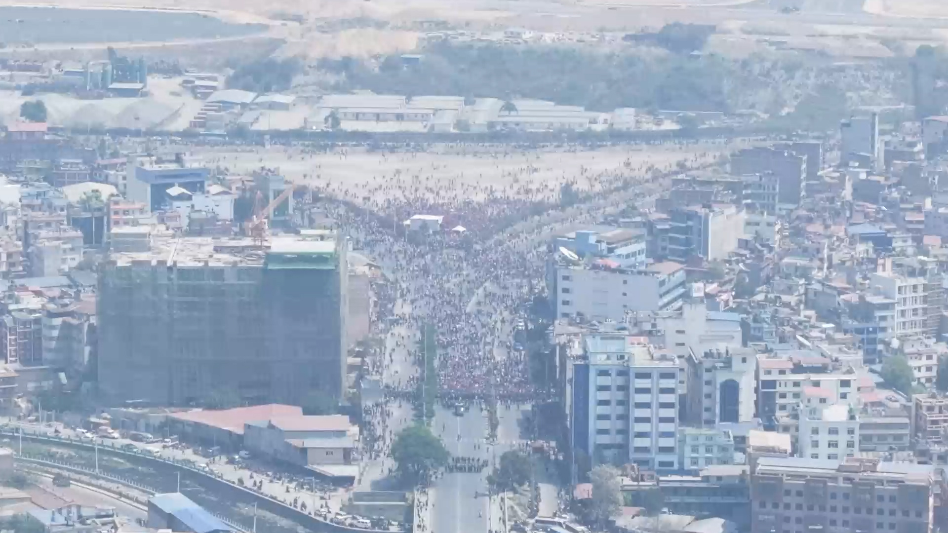 ड्रोनबाट यस्तो देखियो प्रदर्शन क्षेत्र