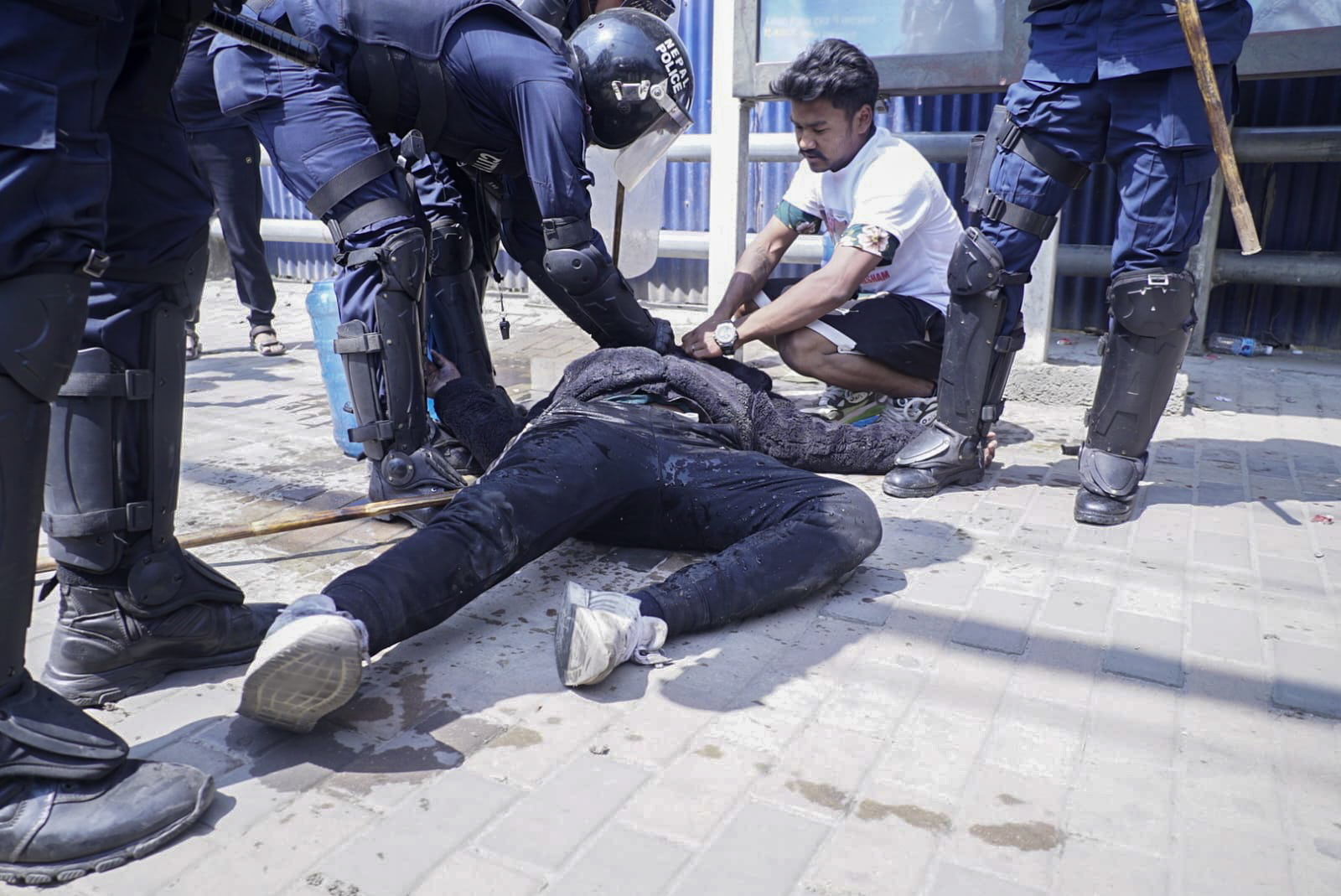 तीनकुनेमा प्रदर्शनकारीलाई गोली लाग्यो, प्रहरीको टाउकोमा चोट