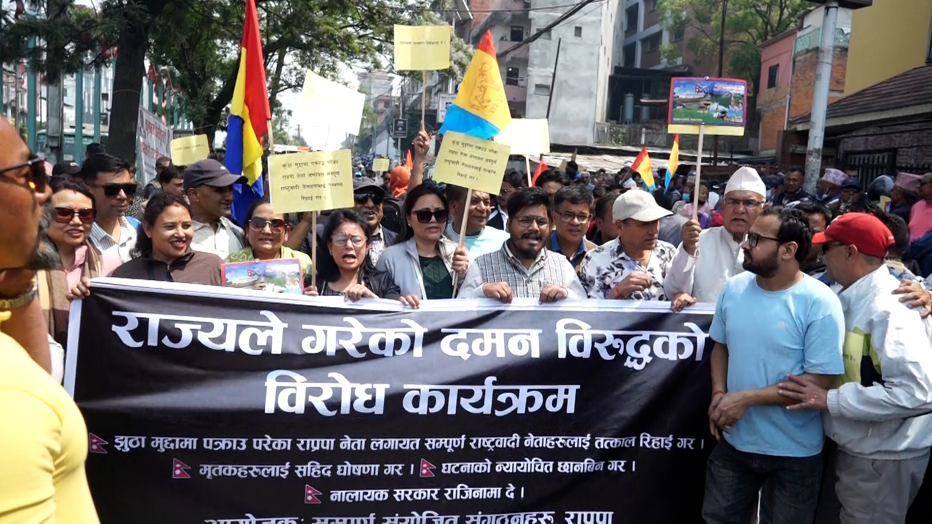 राप्रपा र निकटका संगठनले नेताहरूलाई झूटो मुद्दा लगाएर पक्राउ गरी कारवाही थालिएको भन्दै रिहाइको मागसहित विरोध प्रदर्शन गरेका हुन् ।