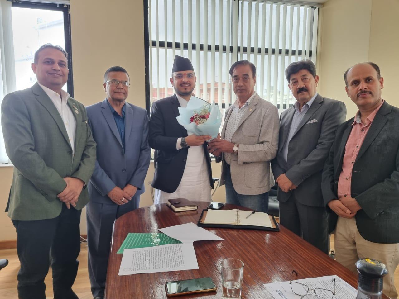 काठमाडौं । नेपाल निर्जीवन बीमा व्यवसायी संघले बीमा प्राधिकरणका अध्यक्ष शरद ओझासंग शुक्रबार भेटवार्ता गरेको छ । संघका अध्यक्ष राजेन्द्र मल्ल नेतृत्वको पदाधिकारी टोलीले प्राधिकरणका नवनियुक्त अध्यक्ष ओझालाई भेटेर बधाई एवं शुभकामना व्यक्त गरेको हो ।