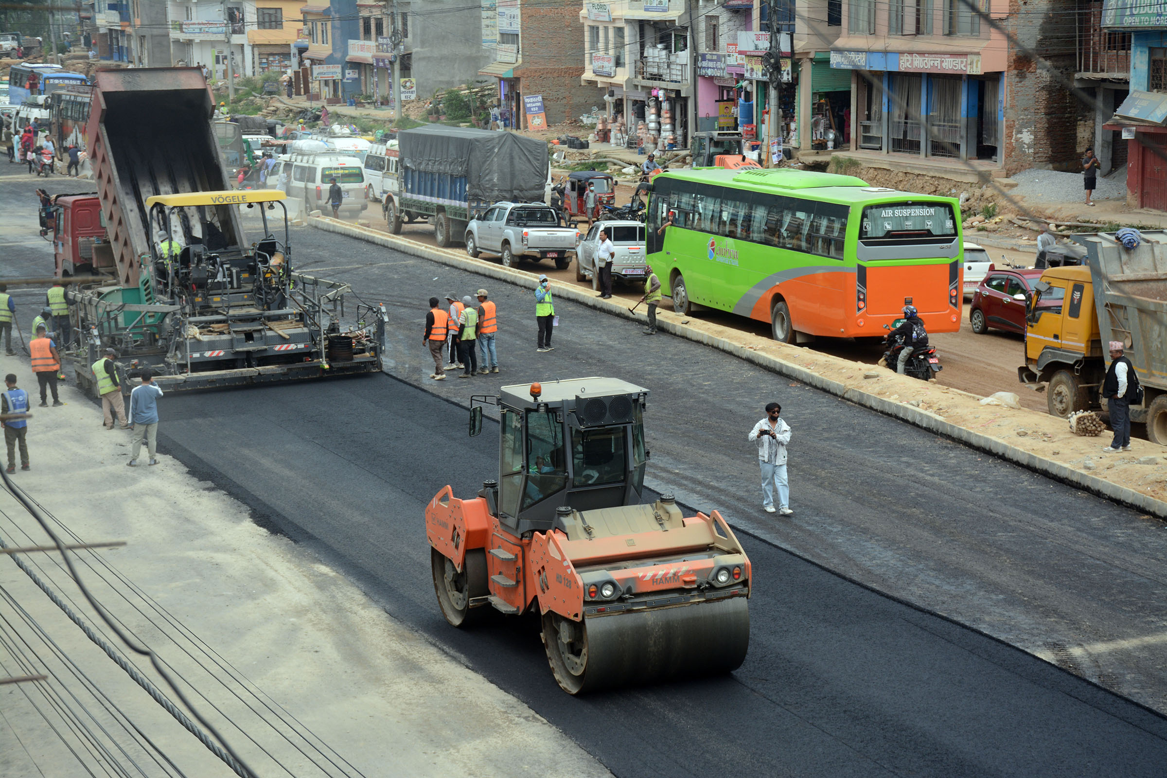 बिहीबार मुख्यचोकमा एकतर्फी कालोपत्र गरिएको छ । बागबजार खण्डमा बुधबार कालोपत्र गरिएको थियो । दुर्गामन्दिरदेखि चापाघाटसम्म पनि चाँडै कालोपत्र हुनेछ ।