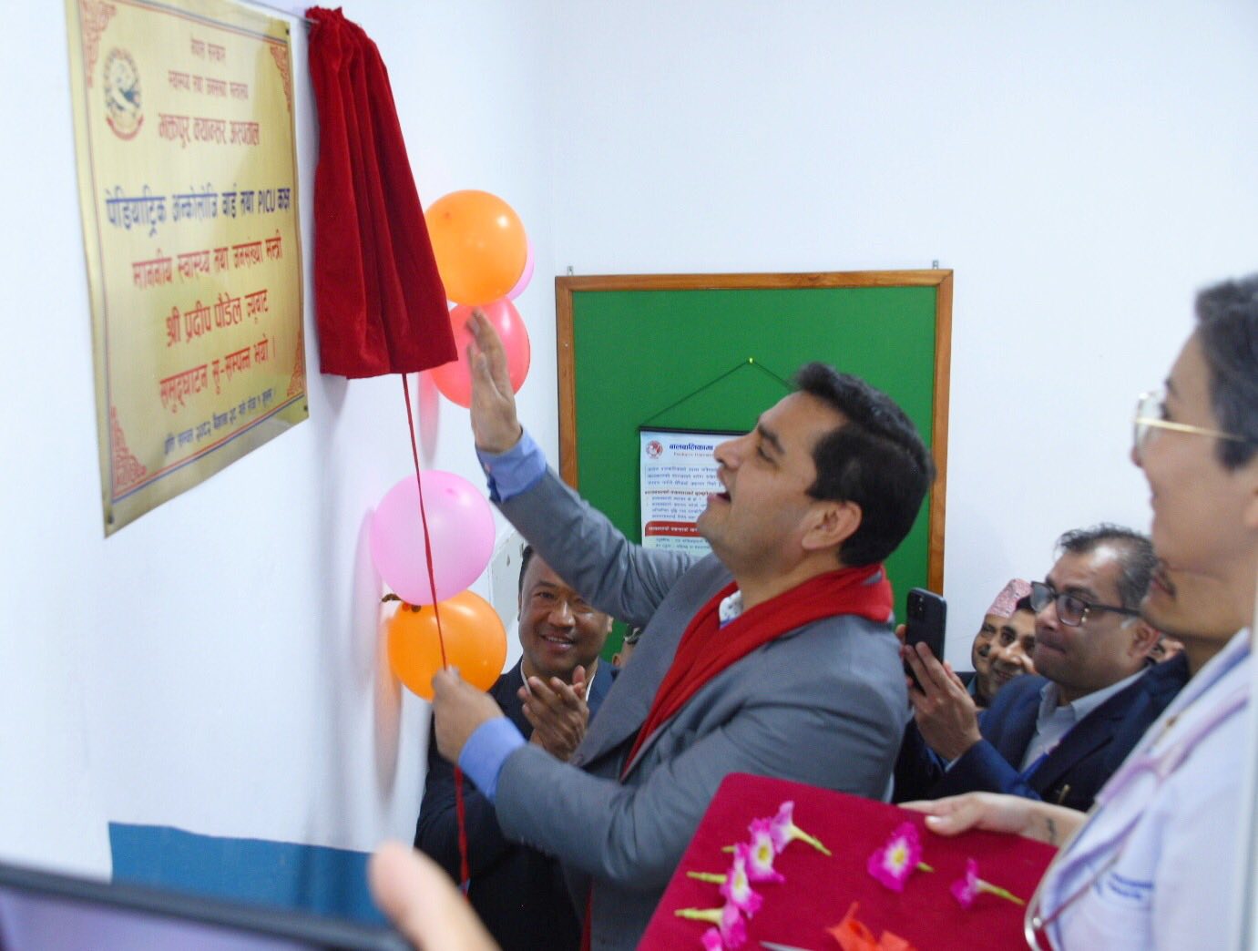 भक्तपुर क्यान्सर अस्पतालमा क्यान्सरपीडित बालबालिकाको विशेष उपचारका लागि बालचिकित्सा सघन एकाइको आज उद्घाटन गर्दै उनले भारतलगायत विदेशमा उपचारका लागि जानेको सङ्ख्या घटाउन अस्पतालका सुविधा विस्तार गर्दै लगिएको बताए । उनले स्वदेशमा सहज सेवा पाउने वातावरण तयार गरिने प्रतिबद्धता जनाए ।