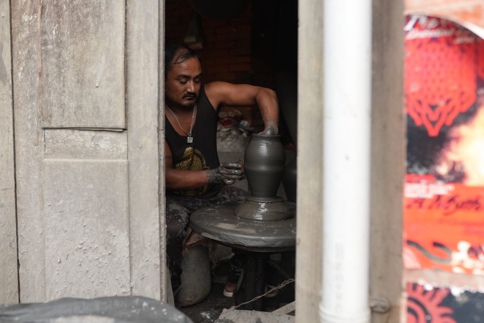 भक्तपुरको ‘पोटरी स्क्वायर’मा स्थानीयहरु माटोको भाँडा बनाउँनमा व्यस्त (फोटोफिचर)