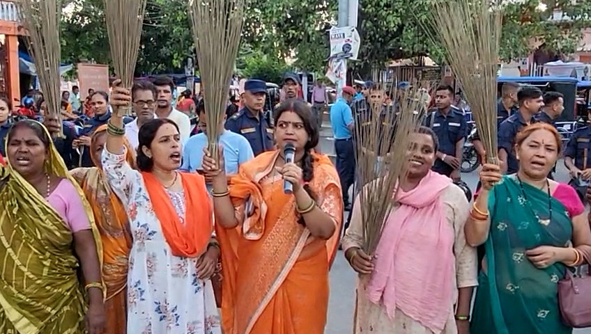 समाजवादी महिला संघ धनुषाद्वारा जनकपुरधाममा झाडुसहित प्रदर्शन