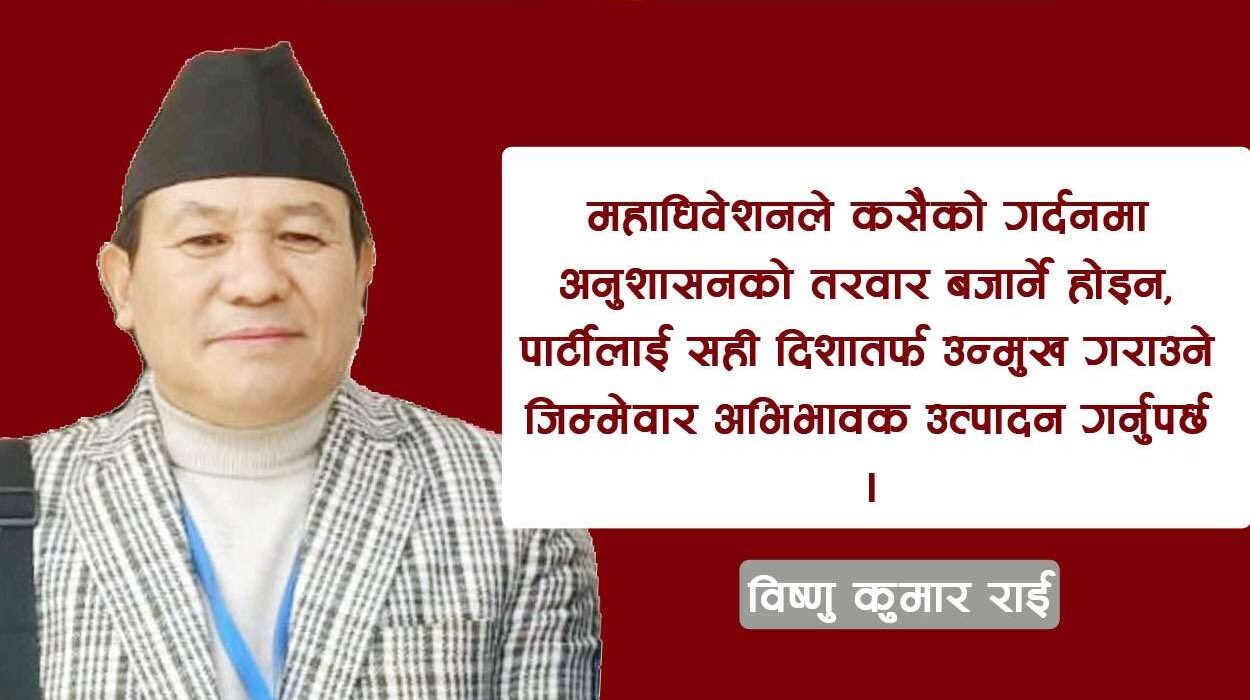 नेता राईले महाधिवेशनलाई केवल पद बाँडफाँडको अभ्यास नभई नयाँ राजनीतिक दिशा तय गर्ने ऐतिहासिक अवसरको रूपमा लिनुपर्ने बताएका छन् ।