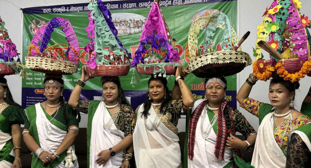 शनिबार थारु महिला समाज उपत्यका समितिले काठमाडौंको पर्यटन बोर्डमा आयोजना गरेको ‘समाचकेवा पर्व २०८२’मा थारु समुदायका दिदीबिहनीहरु भेला भएर हर्षोल्लासपूर्वक यो पर्व मनाए ।