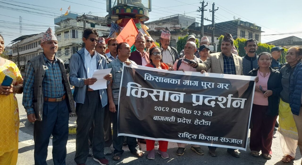 हेटौंडा । बेमौसमी वर्षाबाट धानबालीमा ठूलो क्षति पुगेपछि क्षतिपूर्ति र किसानका दीर्घकालीन माग सम्बोधनको लागि राष्ट्रिय किसान संजालद्वारा आयोजना गरिएको दबाबमूलक कार्यक्रम आज हेटौंडामा सम्पन्न भएको छ ।