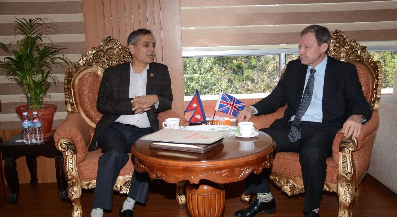 काठमाडौँ, २८ कात्तिकः गृहमन्त्री ओमप्रकाश अर्यालसँग नेपालका लागि बेलायती राजदूत रोब फेनले शिष्टाचार भेटवार्ता गरेका छन् । गृह मन्त्रालयमा आज भएको भेटमा उनीहरूबीच पछिल्लो परिवर्तित राजनीतिक परिस्थितिबारे विमर्श भएको गृहमन्त्रीको सचिवालयले जनाएको छ ।