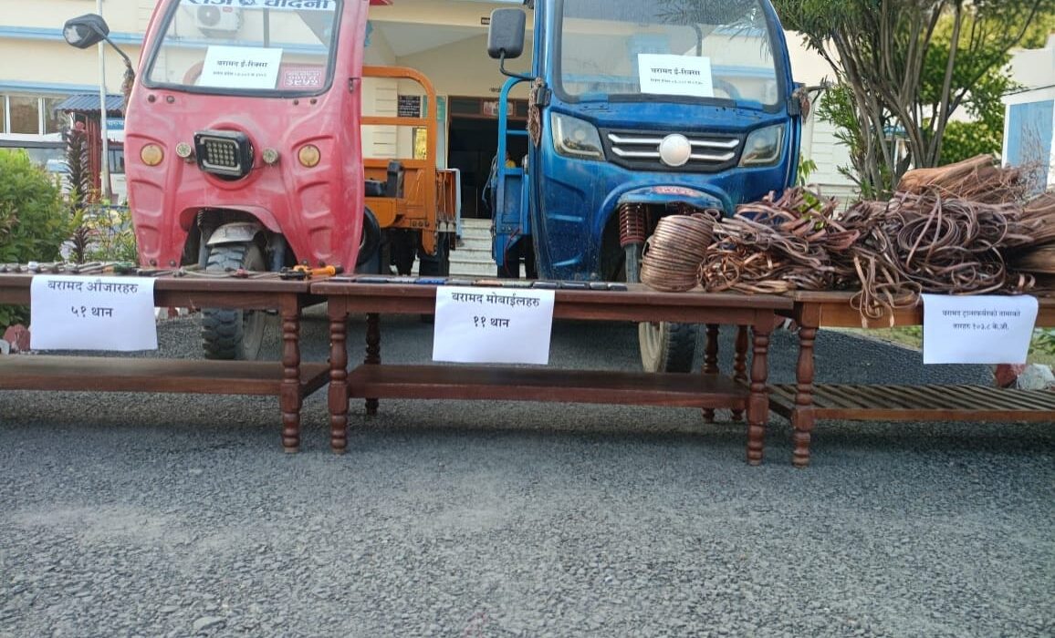 प्रहरीले पक्राउ परेकाहरूको साथबाट १०३.८ केजी तामाको तार, चोरीका लागि प्रयोग गरिएका ५१ थान औजार र २ वटा ई–रिक्सा बरामद गरेको छ। अनुसन्धानमा संलग्न प्रहरी टोलीका अनुसार भारतीय नागरिक सुखाडी सहनीले इलामका दुर्गा अधिकारी, सिन्धुपाल्चोकका सोनाम लामा र महोत्तरीका बुधे माझीसँग मिलेर एकान्त स्थानमा रहेका ट्रान्सफर्मरबारे सूचना सङकलन गर्ने गरेको पाइएको छ।