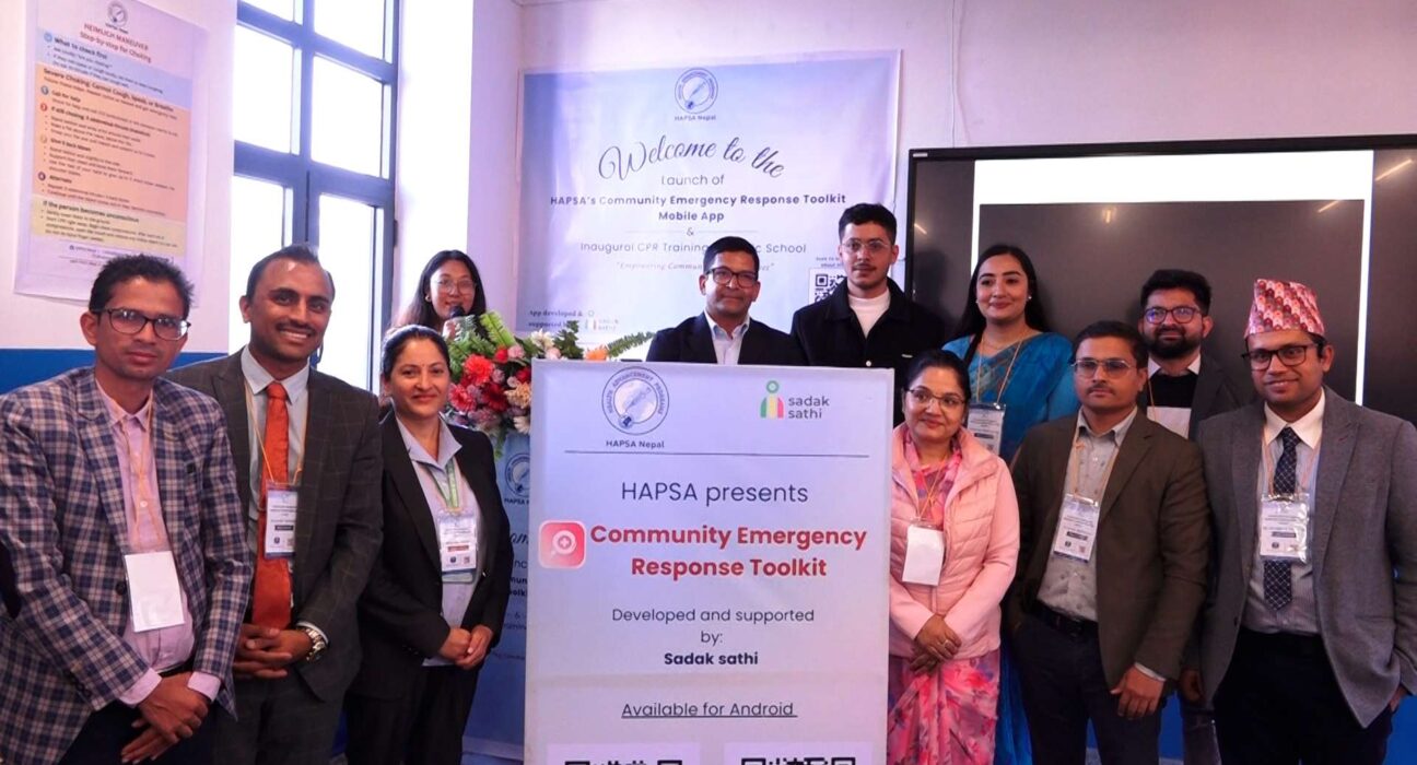 बुधबार हाप्सा नेपाल द्वारा दरबार हाई स्कूल, रानीपोखरीमा आकस्मिक सामुदायिक रेस्पोन्स टूलकिटको मोबाइल एपको एक कार्यक्रमका बिच औपचारिक उद्घाटन गर्दै पहिलोपटक सार्वजनिक विद्यालयमा हातले मात्र दिईने सिपीआर र चोकिंग तालिम सम्पन्न गरिएको हो ।