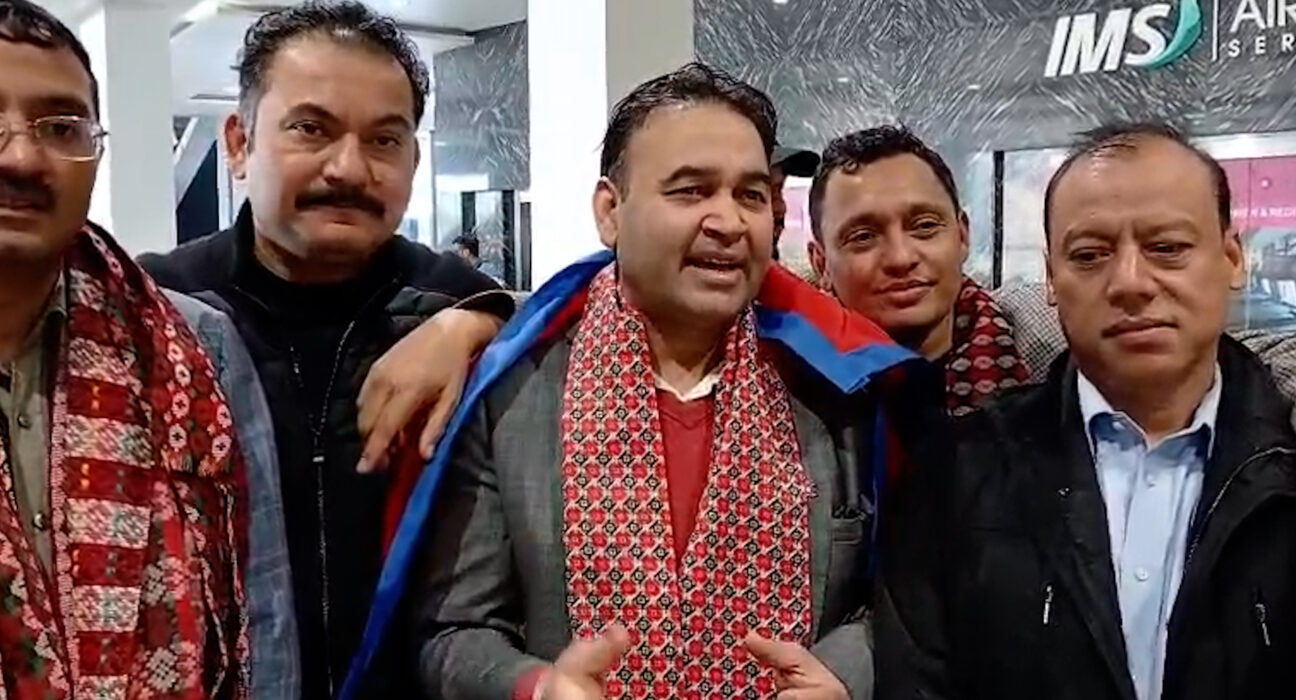 स्वागतका लागि एनआरएनए आईसीसी अध्यक्ष महेश श्रेष्ठ, उपाध्यक्ष खगेन्द्र न्यौपाने, मनोज कुमार श्रेष्ठ, युवा संयोजक भिमसेन थापालगायत नेतृत्व टोली तथा अभियानकर्ताहरू उपस्थित थिए। विमानस्थलमा एकता र पुनर्मिलनको खुसीयाली झल्किने वातावरण सिर्जना भएको थियो।