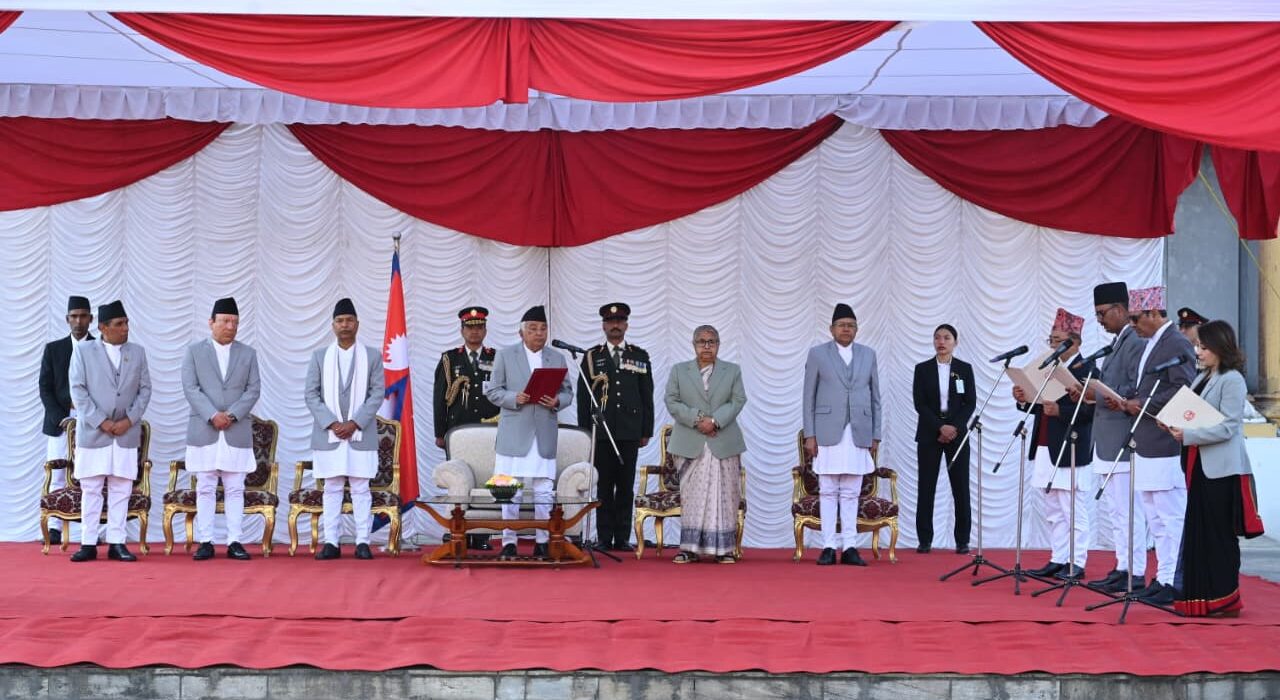 काठमाडौं । नवनियुक्त मन्त्रीहरूले पद तथा गोपनीयताको शपथ ग्रहण गरेका छन् । शुक्रबार राष्ट्रपति रामचन्द्र पौडेलसमक्ष राष्ट्रपतिको कार्यालय शीतल निवासमा चार मन्त्रीहरूले पद तथा गोपनीयताको शपथ लिएका हुन् ।