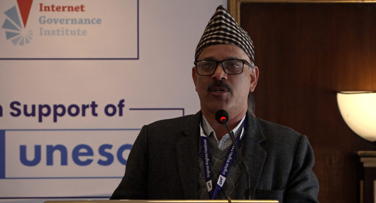 उनले भने,‘डिजिटल राइट्स, डिजिटल कन्फ्रेन्समा नेपालको कोर मुद्धा नै के हो भने नेपालमा जतिपनि डिजिटल राइट्सको समस्याहरु छन्, त्यो चाहे विकासको होस्, चाहे पुर्न निर्माण गर्ने कुरा होस, चाहे निजी कम्पनीलाई इनकरेज गर्ने कुरा होस, चाहे अधिकारहरुको छिनोफानोको कुरा होस् यि सबै विषयहरुमा अथवा कानून बनाउने शिलसिलाहरुमा हामीले सधैभरी उठाउँदै आएको, भन्दै आएको तर हुन नसकेको विषय नै के को भने नेपालले रियल्ली मल्टिस्टेक होल्डर अप्रोजलाई आत्मसाथ नै गर्न सकेन । यो नै दुर्भाग्य हो ।’