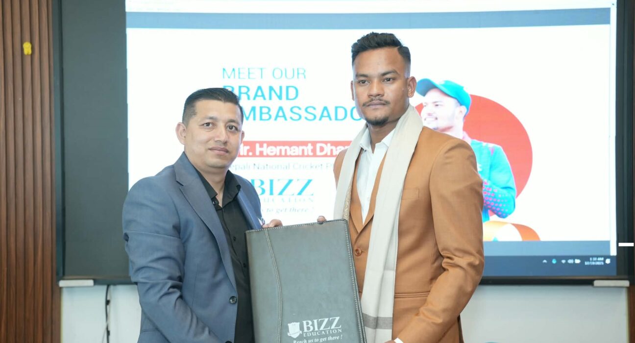काठमाडौँ, ८ पुसः क्रिकेट खेलाडी हेमन्त धामीलाई ‘बिज एजुकेशन’ले ब्रान्ड एम्बासडरका रूपमा अनुबन्ध गरेको छ । उनलाई तीन वर्षका लागि ब्रान्ड एम्बासडरका रूपमा अनुबन्ध गरिएको हो ।