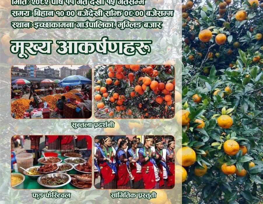 चितवन । स्थानीय किसानको उत्पादनलाई बजारसँग जोड्दै पर्यटन प्रवद्र्धन गर्ने उद्देश्यका साथ आजदेखि दोस्रो इच्छाकामना सुन्तला महोत्सव तथा फुड फेस्टिवल सुरु भएको छ ।