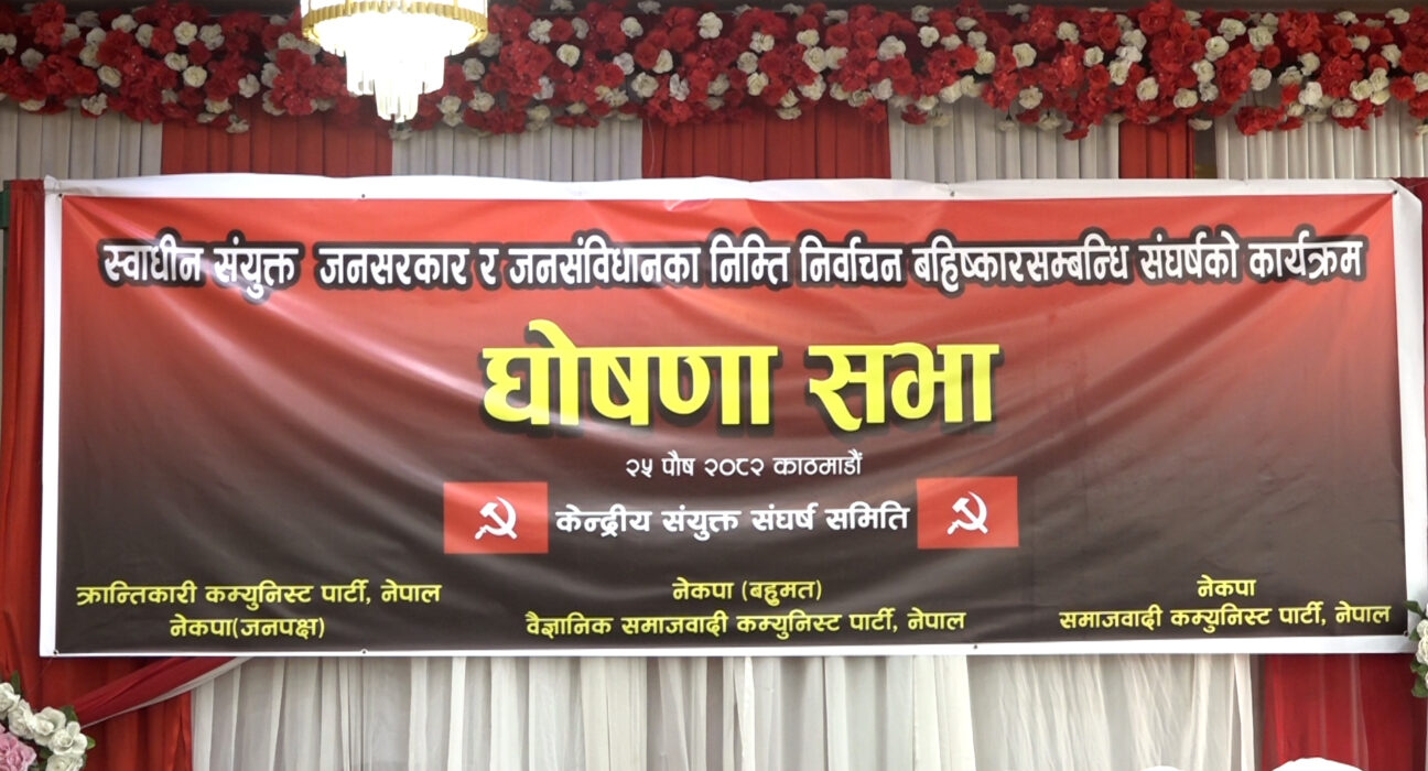 काठमाडौं । केन्द्रीय संयुक्त संघर्ष समितिले फागुन २१ गते तोकिएको निर्वाचन बहिस्कारसम्बन्धी पहिलो चरणको संघर्षको कार्यक्रम घोषणा गरेको छ ।
