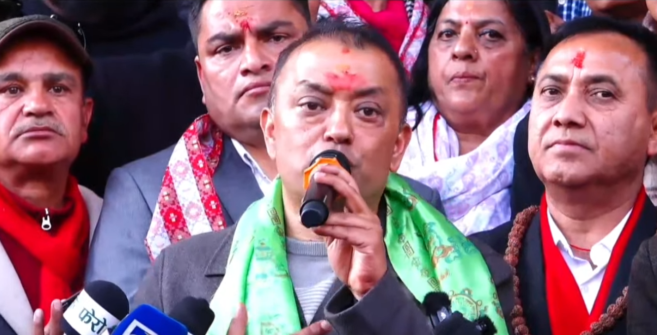 उनले भने,‘स्पष्ट ,विनम्र,बोल्ड ढंगले सभापति गगन थापालाई सभापतिको रुपमा अगाडि सार्ने निर्णय गरेको छौं ।’ उनले नेपालमा देखिएका प्रधामन्त्रीको उम्मेदवारमध्ये कांग्रेसले प्रस्तावित गरेको उम्मेदवार अब्बल नम्बरका साथ अघिल्लो पङ्तिमा उभिने दाबी गरे ।