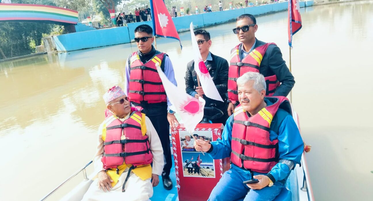 अध्यक्ष ओलीद्वारा ईन्द्रेणी तालमा मोटरबोट सयर