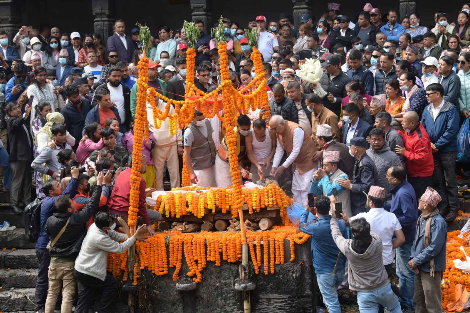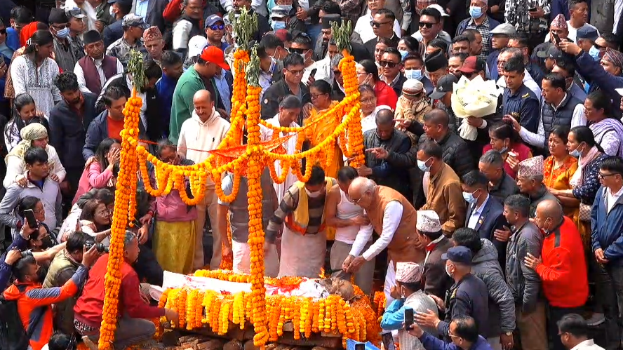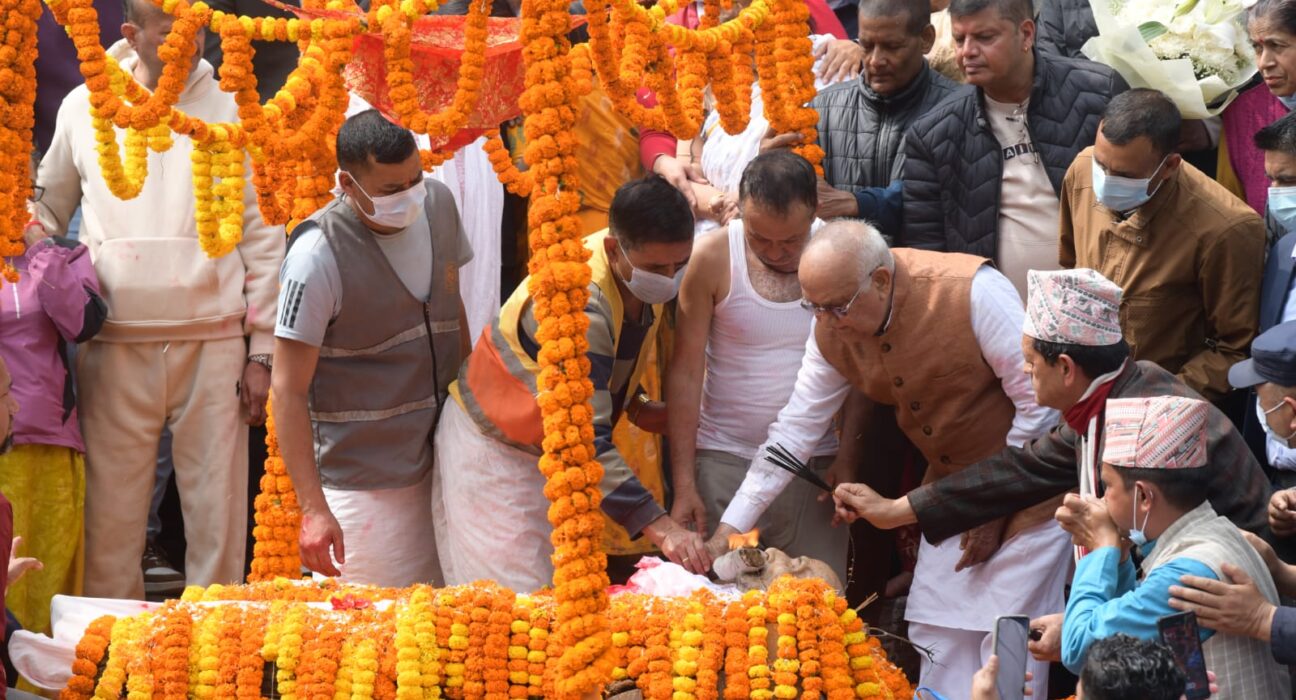 काठमाडौं । नेकपा एमालेका अध्यक्ष एवं पूर्वप्रधानमन्त्री केपी शर्मा ओलीका पिता मोहनप्रसाद ओलीको पार्थिक शरिरलाई पशुपतिमा अन्तेष्टि गरिएको छ । उनको पार्थिव शरीरलाई आजै पशुपति आर्यघाटमा दाहसंस्कार गरिएको हो ।