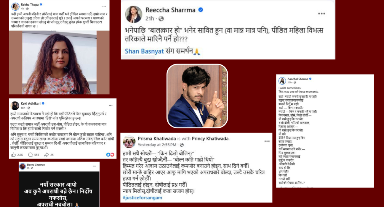 प्रिज्माले आफ्नो स्टाटसमार्फत समाजको सोचमाथि गम्भीर प्रश्न उठाएकी छन् । उनी लेख्छिन्, ‘हामी सधैं सोध्छौं,‘किन ढिलो बोलिन ?’ तर कहिल्यै बुझ्न खोज्दैनौं— ‘बोल्न कति गाह्रो थियो’ हिम्मत गरेर आवाज उठाउनेलाई कमजोर बनाउने होइन, साथ दिने बनौँ।’ छोरी मान्छे बाहिर आएर आफू माथि भएको अपराधबारे बोल्दा, उल्टै उसकै चरित्र हत्या गर्न छोडौँ। पीडितलाई होइन, दोषीलाई प्रश्न गरौँ। न्याय मिलोस्, दोषीलाई कडा सजाय होस्।’