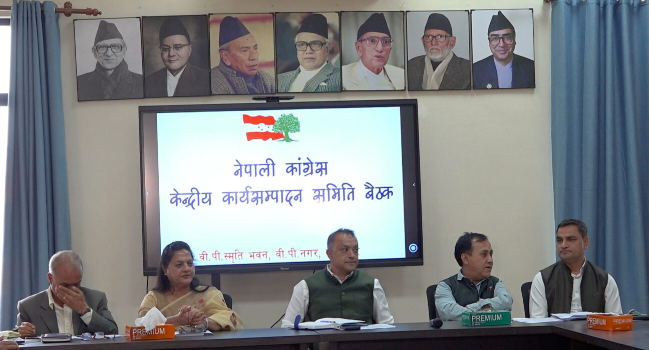 काठमाडौं । नेपाली कांग्रेसको केन्द्रीय कार्यसम्पादन समितिको बैठक बुधबार पार्टी कार्यालयमा जारी रहेको छ । सभापति गगन थापाको नेतृत्वमा बसेको बैठकमा पार्टीको समसामयिक राजनीतिक अवस्था, आन्तरिक संरचना सुदृढीकरण तथा विभिन्न नीतिगत विषयमा विस्तृत छलफल भइरहेको छ ।