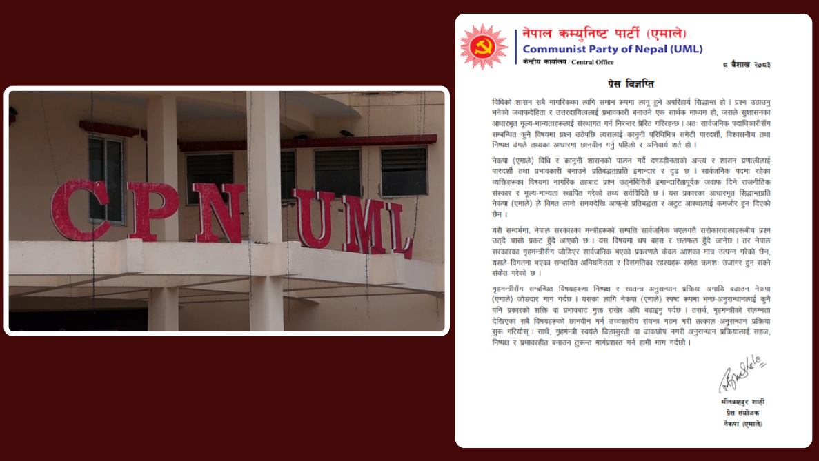 विधिको शासन सबै नागरिकका लागि समान रुपमा लागु हुने अपरिहार्य सिद्धान्त भएको एमालेले स्मरण गराएको छ ।