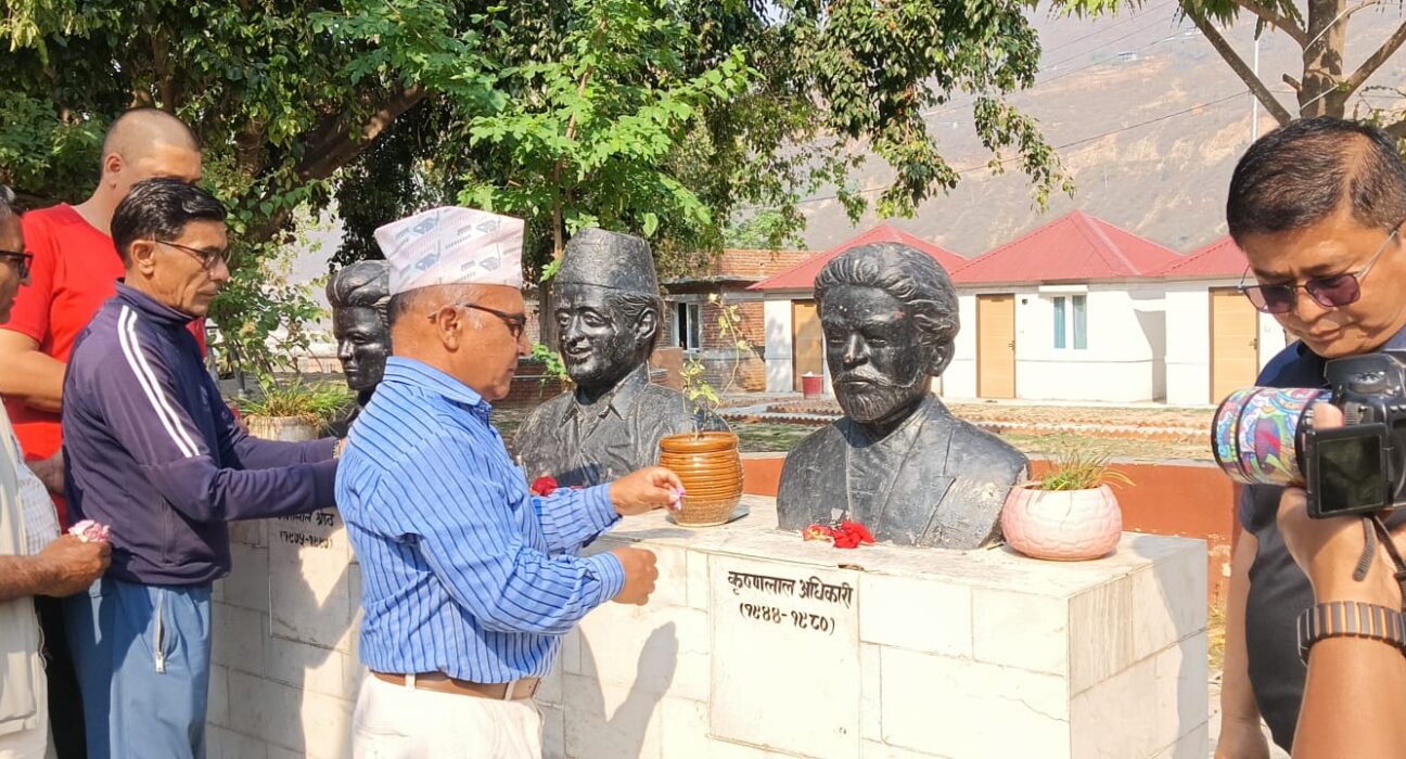 पुष्पलालको जिल्ला रामेछापमा पुष्पगुच्छा अर्पण