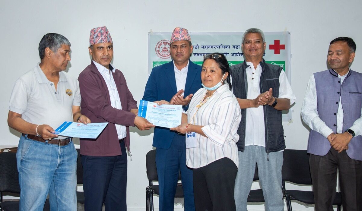 वडा स्तरीय प्राथमिक उपचार तालिम अन्तर्गत कन्या माध्यमिक विद्यालयमा वडा १७ का स्थानीयका लागि सञ्चालित तालिमको समापन गर्दै उनले भने, ‘सिप सिकेको राम्रो । तर, सकेसम्म यो सिपको प्रयोग गर्नु नपर्ने अवस्था हुनु राम्रो हो । परि हालेका बेला कसैले पनि पछाडि हट्नु हुँदैन ।’