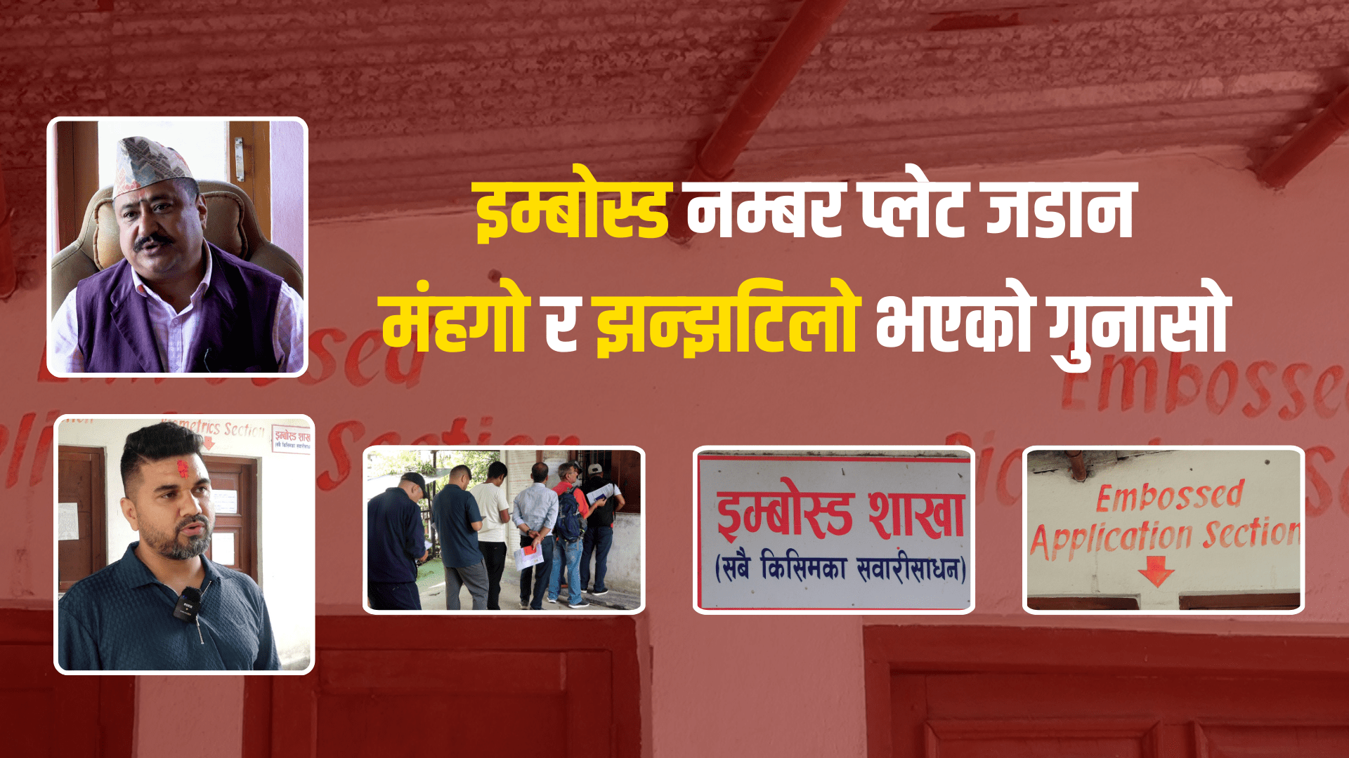 काठमाडौं । सरकारले आगामी १ असोजदेखि सवारी साधनहरुमा अनिवार्य रूपमा इम्बोस्ड नम्बर प्लेट जडान गर्नुपर्ने प्रक्रिया अगाडि बढाएपछि यातायात कार्यालयहरुमा...