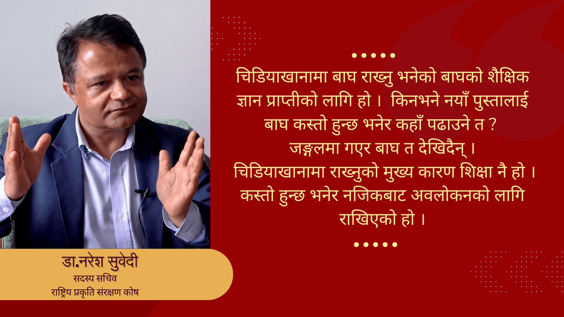 मुख्य समाचार समाचार समाज मान्छे बाघको आहारा होइन, हाम्रो बुझाइ गलत छ : डा.नरेश... साउन १४, काठमाडौं । डा.नरेश सुवेदी राष्ट्रिय प्रकृति संरक्षण कोषका सदस्य सचिवका रुपमा कार्यरत छन् । संरक्षणको क्षेत्रमा लामो समय... BY News and Updates 0 Comments