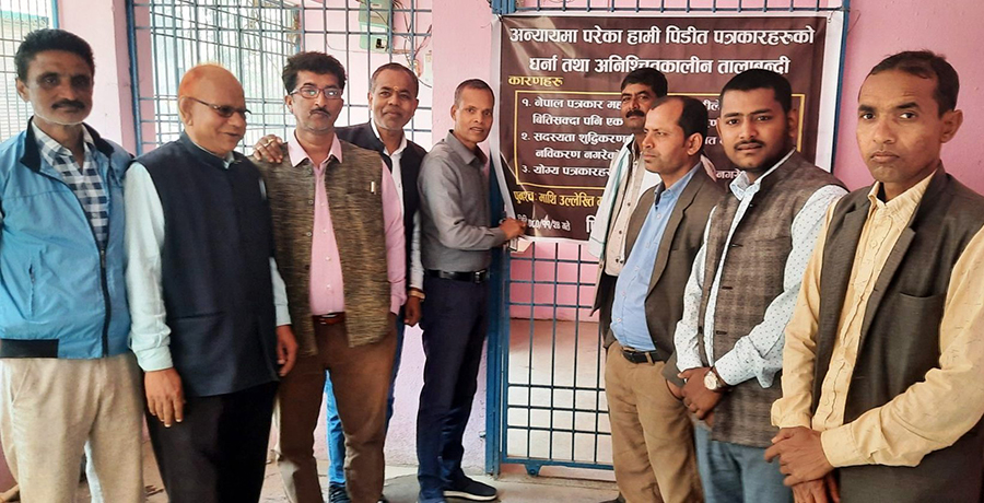 मुख्य समाचार समाचार समाज सदस्यता शुद्धीकरण विवादमा पत्रकार महासंघ सप्तरीको कार्यालयमा तालबन्दी २६ फागुन, जनकपुरधाम । सदस्यता शुद्धीकरण र सिफारिस विभेद र पक्षपात गरेको भन्दै नेपाल पत्रकार महासंघ सप्तरी शाखाको कार्यालयमा तालाबन्दी... BY रातो कागज 0 Comments