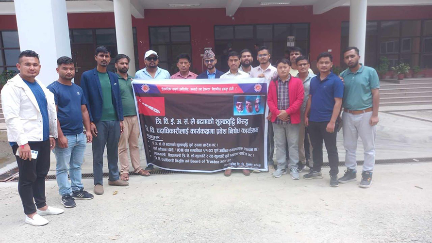 १५ भदौ, काठमाडौं । अखिल नेपाल विद्यार्थी संगठन (अनेरास्ववियु) जिल्ला कमिटीले इन्जिनियरिङ अध्ययन संस्थानको शुल्क वृद्धि खारेज हुनुपर्ने भन्दै त्रिभुवन...