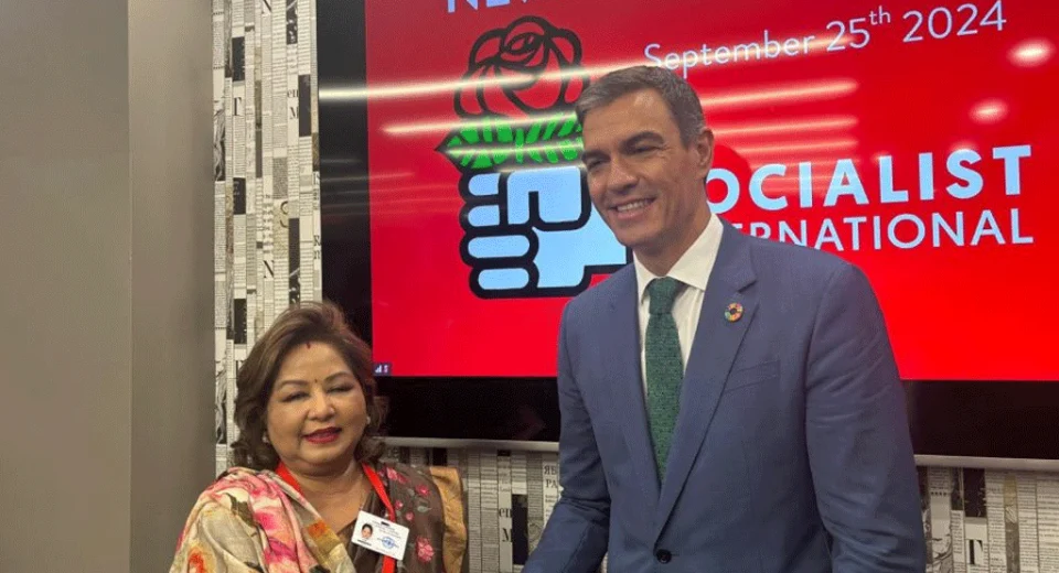 १० असाेज, वाशिङ्गटन डिसी । संयुक्त राष्ट्रसङ्घको महासभामा भाग लिन आएकी परराष्ट्रमन्त्री डा.आरजु राणा देउवाले स्पेनका प्रधानमन्त्री पेड्रो सान्चेजसँग भेटवार्ता गरेकी छन् । त्यस अवसरमा उनीहरूबीच नेपाल र स्पेनबीच आपसी सम्बन्ध थप मजबुत बनाउनेलगायत विषयमा छलफल भएको थियो । नेपाल र स्पेनबीच सन् १९६८ को मे १३ तारिखमा कूटनीतिक सम्बन्ध स्थापना भएको थियो ।