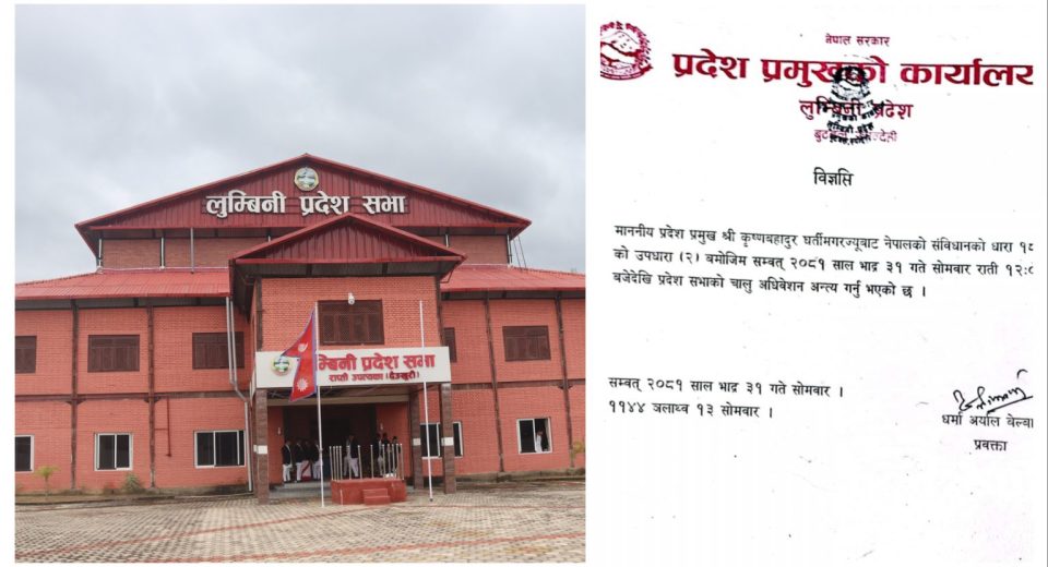 लुम्बिनी प्रदेश सभाको चालु अधिवेसन अन्त्य