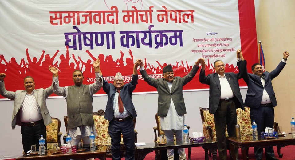 ५ असार, काठमाडौं। नेकपा एमालेका सचिव योगेश भट्टराईले समाजवादी मोर्चा बुढाहरुको क्लब भएको टिप्पणी गरेका छन् । मंगलबार संघीय संसद भवन परिसरमा पत्रकारहरुसँग कुरा गर्दै उनले समाजवादी मोर्चामा रहेका दलहरुबीच पछि झगडा पर्ने र अलग हुने दाबी गरे । ‘यो प्रौढहरुको क्लब हो । यसमा इतिहासको बखान हुन्छ, मेरो पालामा यो, मेरो पालामा यो …। […]