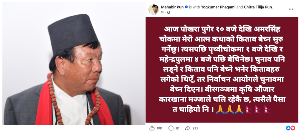 झापा । झापाको गौरादह नगरपालिकाका मेयर छत्रपति सुवेदीमाथि हातपात गर्ने एक जनालाई प्रहरीले पक्राउ गरेको छ । गौरादह–५ राजपति चोक, चप्रामारी बस्ने ३४ वर्षीय भिष्म सिटौलाले आइतबार साँझ करिब ७ः३० बजे मादक पदार्थ सेवन गरेर मेयर सुवेदीको घरमै पुगेर गालीगलौज तथा हातपात गरेको प्रहरीले जनाएको छ । मेयर सुवेदीका अनुसार सिटौला घरमै आएर विवाद गर्दै […]