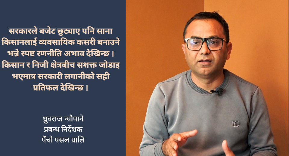 साना किसानलाई बजारसँग जोड्दै ‘बारीदेखि थालीसम्म’ मोडलमा पैंचो पसल निजी क्षेत्र र किसानबीच प्रभावकारी समन्वय नभए कृषि क्षेत्रको उन्नति असम्भव : ध्रुवराज न्यौपाने